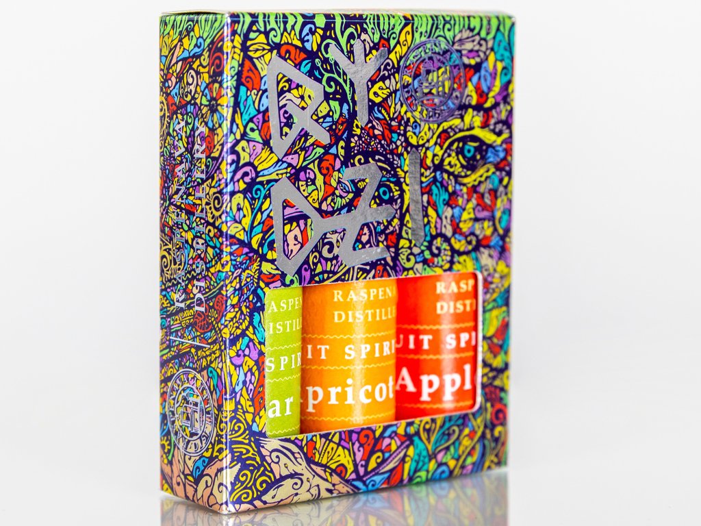 Sada vzorků prémiových Rýdzi ovocných destilátů.